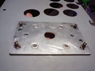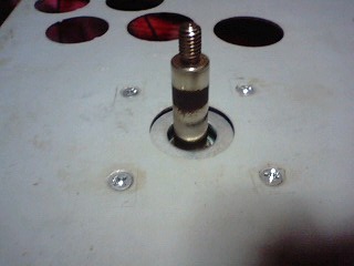 1、ベースの皿ねじ用ざぐりをハンマーで叩いてまっ平らにする。